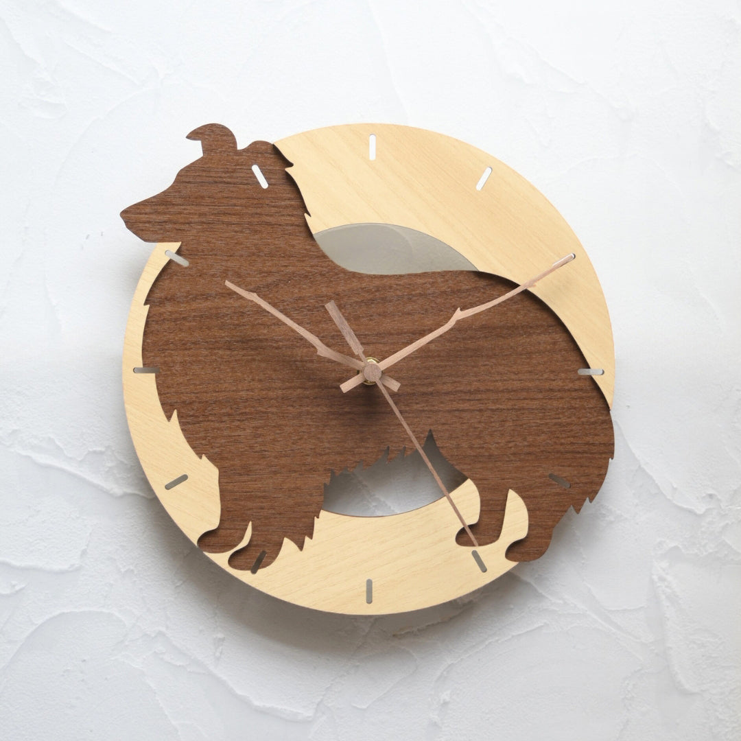 ウエスティをリクエストして、作っていただきました。最初にご提示いただいたデザイン案の一つに少し修正を加えてもらったところ、呼ばれた方を見て少し首を傾げて待っているうちの子によく似て、より可愛くなったのでそのデザインでオーダーしました。実物が来てみると、思ったより軽い素材で出来ており、始めはそのせいで安物に見えたりしないかな?と心配しましたが、壁に掛けてみると、部屋の雰囲気がとても良くなり、何より軽いので扱いが楽でした。振り子が動くようになると、何かを期待して尻尾を振って待っているようで、ますます可愛くなりました。チクタク音がないのもとても良いと思って眺めております。