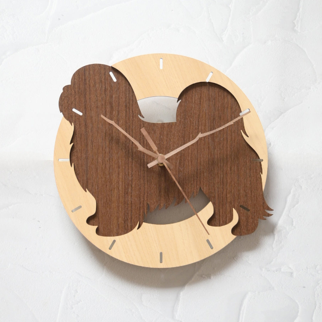 ウエスティをリクエストして、作っていただきました。最初にご提示いただいたデザイン案の一つに少し修正を加えてもらったところ、呼ばれた方を見て少し首を傾げて待っているうちの子によく似て、より可愛くなったのでそのデザインでオーダーしました。実物が来てみると、思ったより軽い素材で出来ており、始めはそのせいで安物に見えたりしないかな?と心配しましたが、壁に掛けてみると、部屋の雰囲気がとても良くなり、何より軽いので扱いが楽でした。振り子が動くようになると、何かを期待して尻尾を振って待っているようで、ますます可愛くなりました。チクタク音がないのもとても良いと思って眺めております。