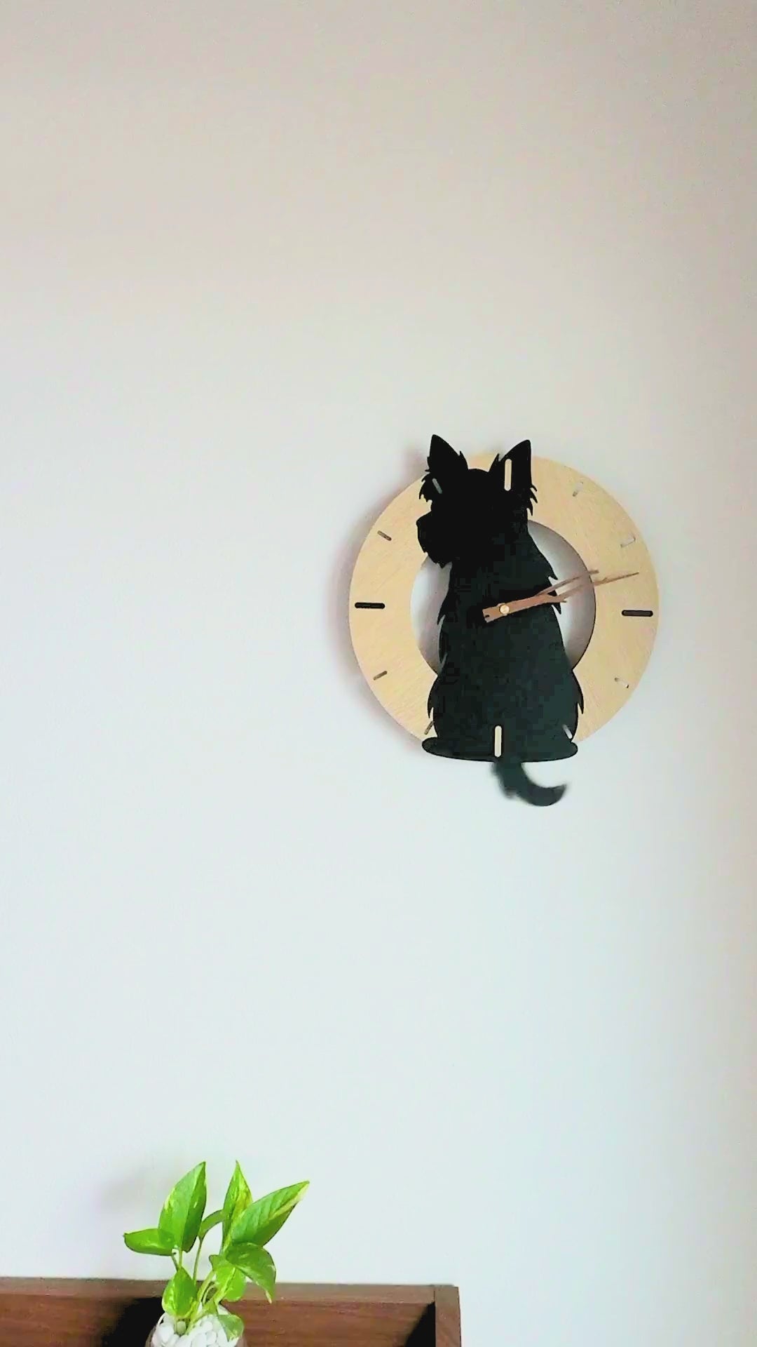 今日、現物を初めて見たのですが、最高の商品でした。さっそく壁にかけました。しっぽのふりふりスピードが、ウチのスキッパーキにそっくりで、家族みんなで大ウケでした。