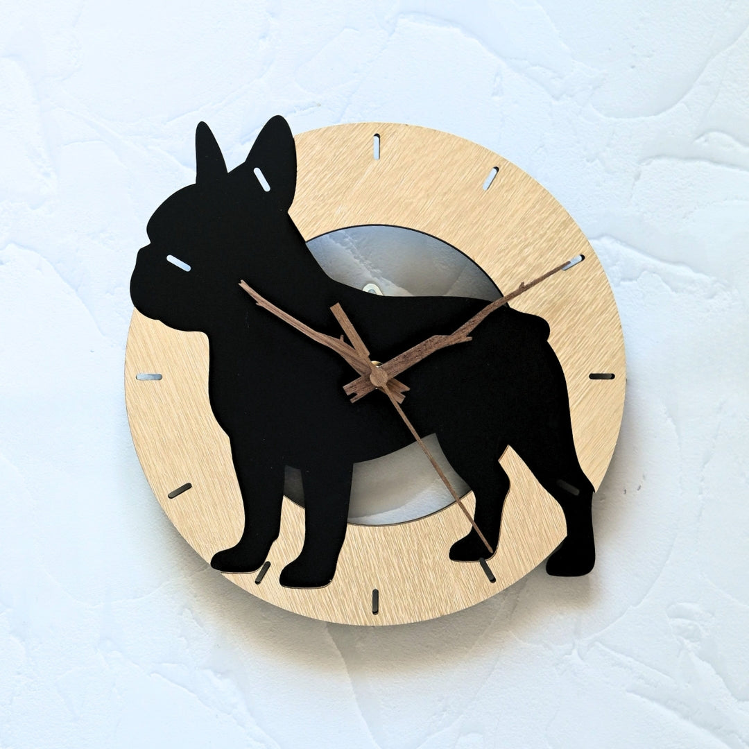 ウエスティをリクエストして、作っていただきました。最初にご提示いただいたデザイン案の一つに少し修正を加えてもらったところ、呼ばれた方を見て少し首を傾げて待っているうちの子によく似て、より可愛くなったのでそのデザインでオーダーしました。実物が来てみると、思ったより軽い素材で出来ており、始めはそのせいで安物に見えたりしないかな?と心配しましたが、壁に掛けてみると、部屋の雰囲気がとても良くなり、何より軽いので扱いが楽でした。振り子が動くようになると、何かを期待して尻尾を振って待っているようで、ますます可愛くなりました。チクタク音がないのもとても良いと思って眺めております。