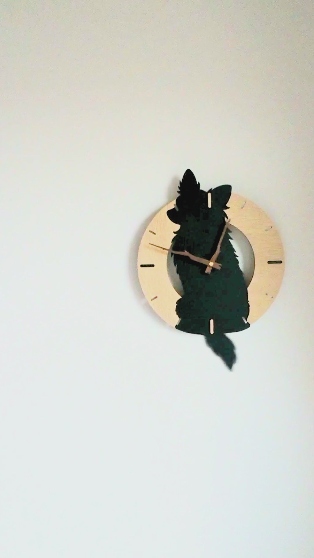 今日、現物を初めて見たのですが、最高の商品でした。さっそく壁にかけました。しっぽのふりふりスピードが、ウチのスキッパーキにそっくりで、家族みんなで大ウケでした。