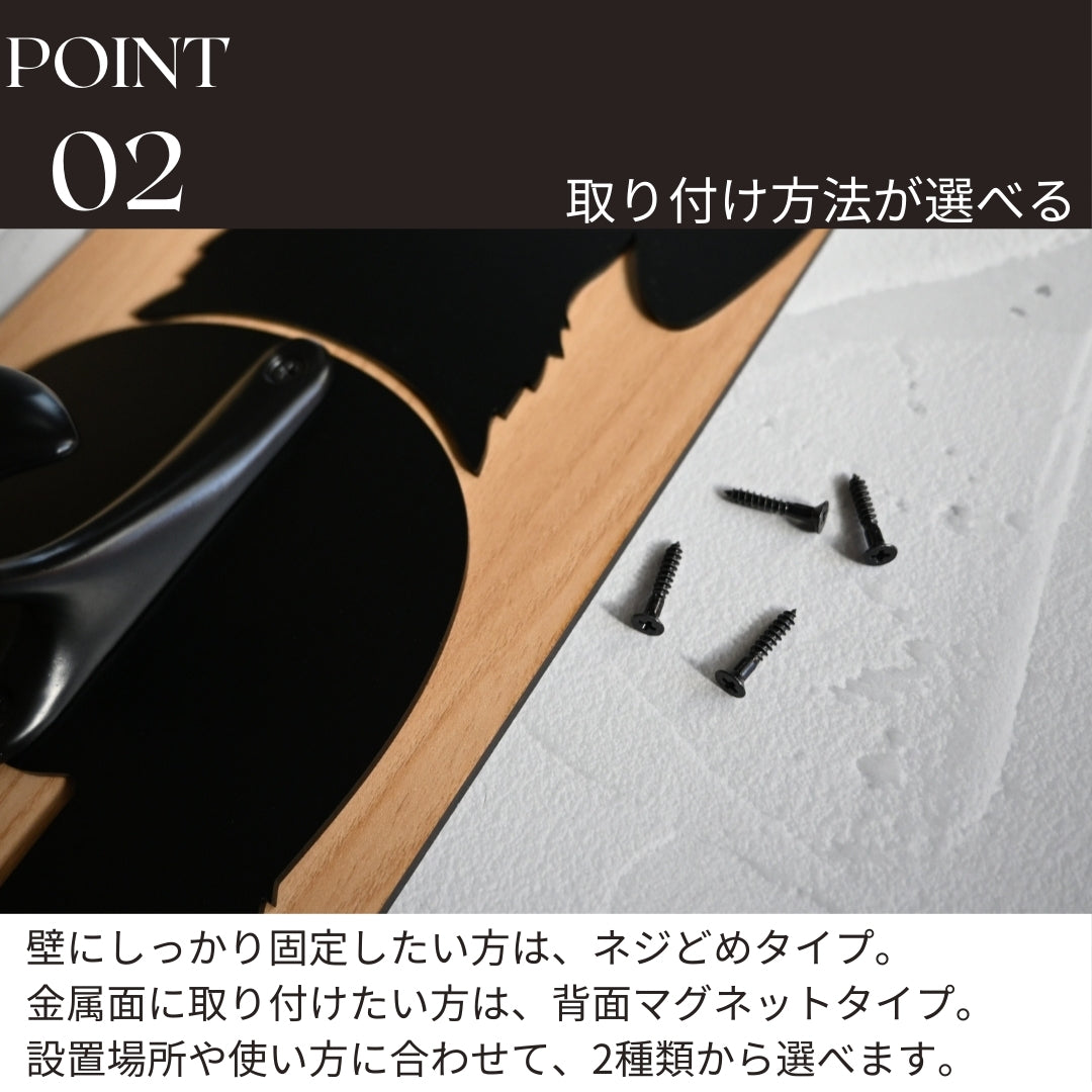 ネジ固定タイプ:壁にしっかり固定したい方向け。設置場所や使い方に合わせてお選びいただけます。