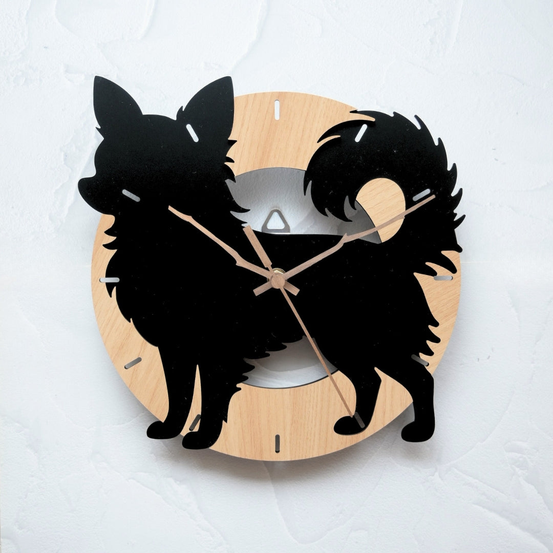 かわいいわんこが時計からとびだした、木目調の壁掛け時計です。